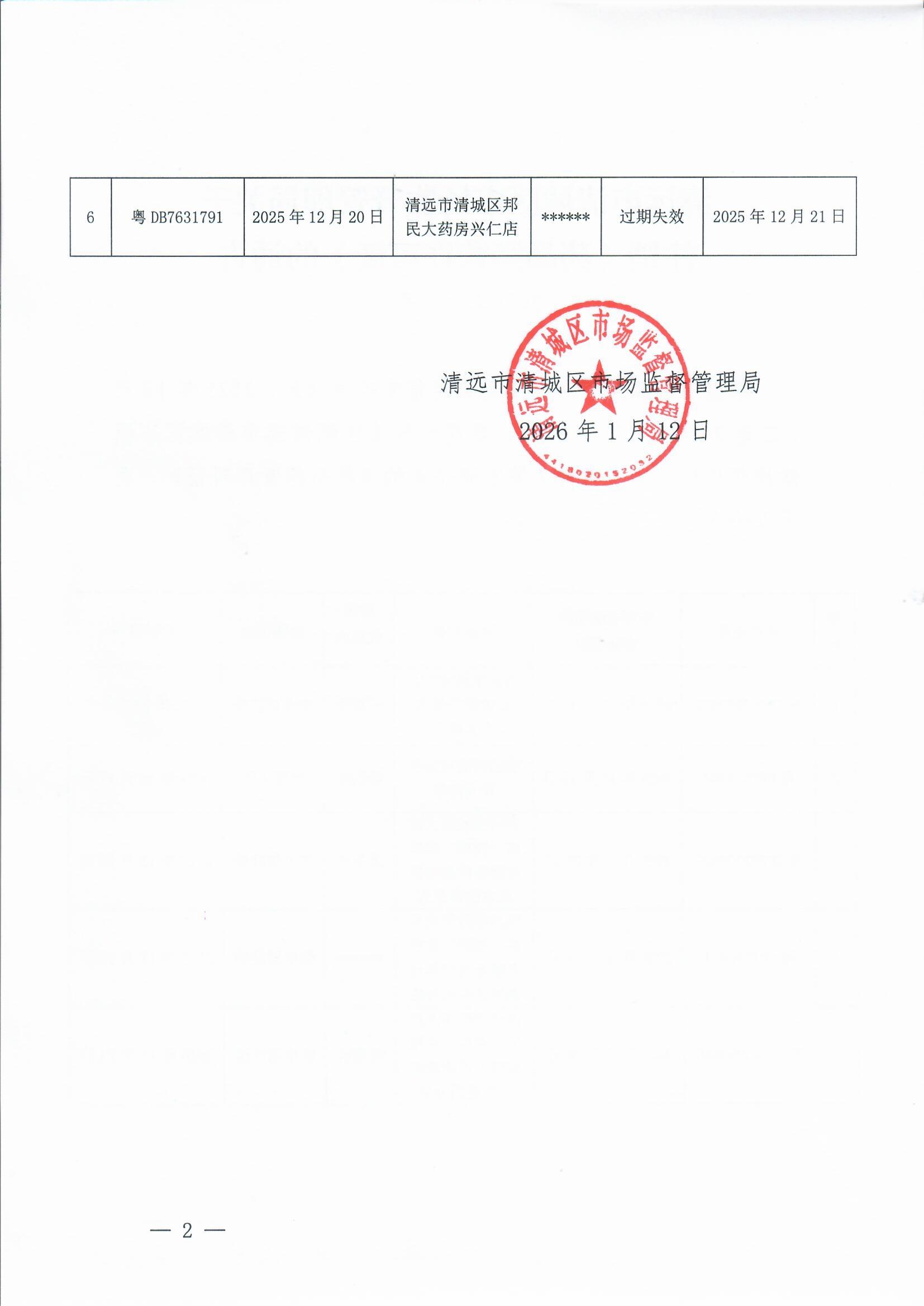 清遠(yuǎn)市清城區(qū)市場監(jiān)督管理局關(guān)于注銷《藥品經(jīng)營許可證》的通告(2026年(1號))