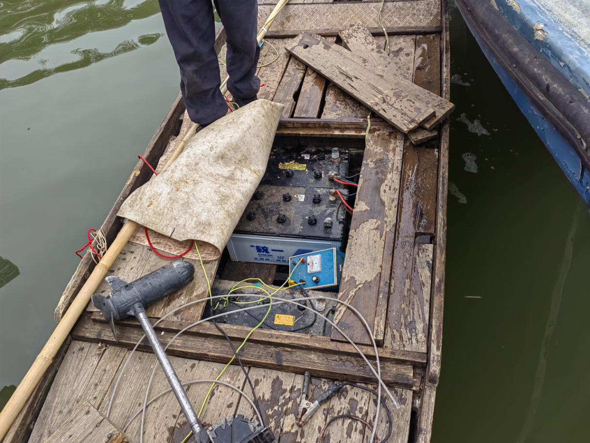 我局執(zhí)法人員于2026年2月10日01時(shí)50分在清遠(yuǎn)市清城區(qū)在飛霞水域現(xiàn)場(chǎng)查獲三無(wú)船舶電魚船1艘(6.06米長(zhǎng)×1.28米寬×5.67米深,常柴發(fā)動(dòng)機(jī)動(dòng)力5.67千瓦),并將該船查扣。經(jīng)執(zhí)法人員現(xiàn)場(chǎng)取證,船上有電魚工具及漁獲物若干,涉事當(dāng)事人現(xiàn)場(chǎng)逃逸,涉嫌違法電魚。涉漁“三無(wú)”船舶現(xiàn)暫時(shí)存放于清遠(yuǎn)市農(nóng)業(yè)執(zhí)法碼頭。
