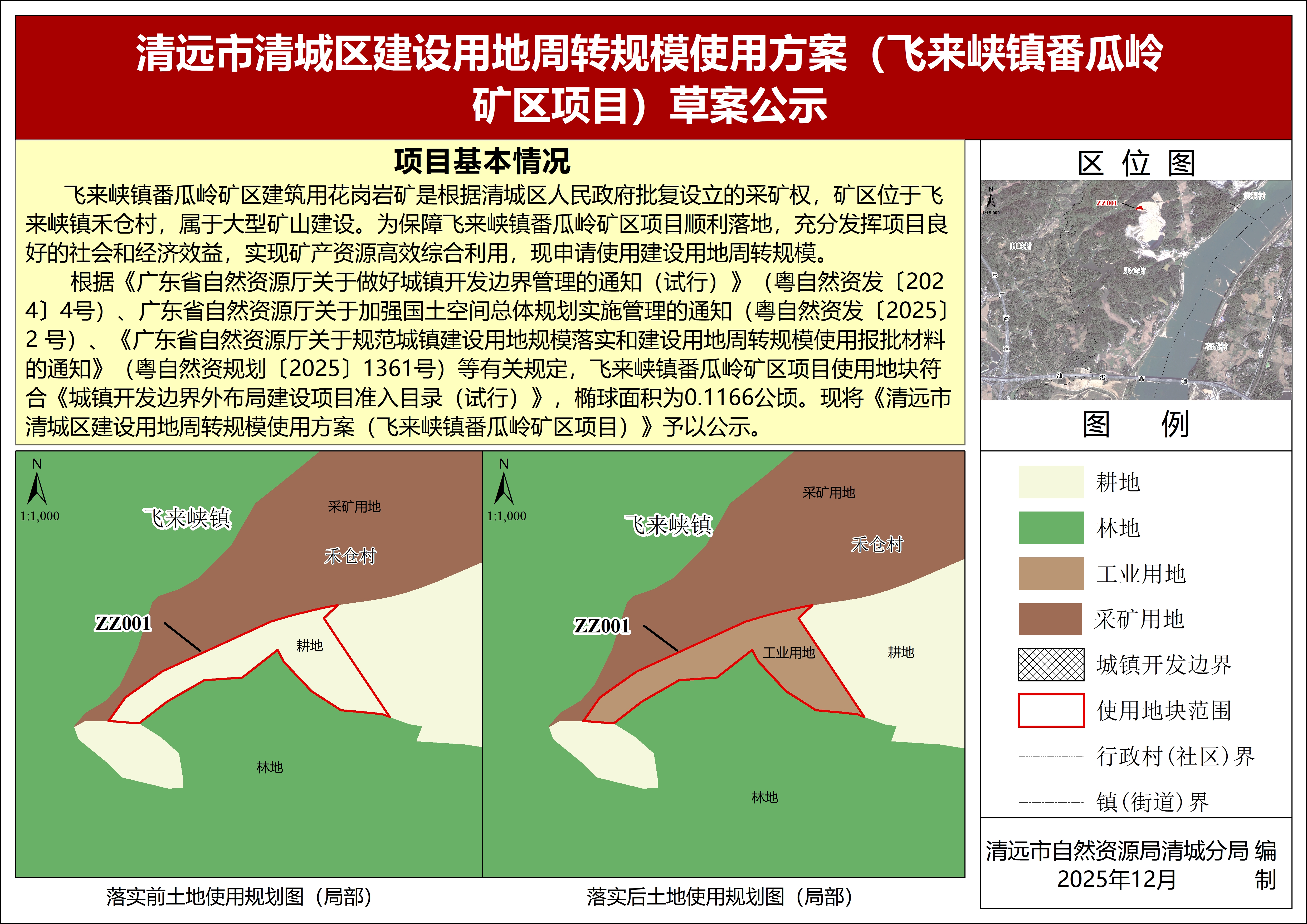 根據(jù)《廣東省自然資源廳關(guān)于加強(qiáng)國土空間總體規(guī)劃實(shí)施管理的通知》(粵自然資發(fā)〔2025〕2號(hào))、《廣東省自然資源廳關(guān)于做好城鎮(zhèn)開發(fā)邊界管理的通知(試行)》(粵自然資發(fā)〔2024〕4號(hào))、《廣東省自然資源廳關(guān)于規(guī)范城鎮(zhèn)建設(shè)用地規(guī)模落實(shí)和建設(shè)用地周轉(zhuǎn)規(guī)模使用報(bào)批材料的通知》(粵自然資規(guī)劃〔2025〕1361號(hào))等有關(guān)文件規(guī)定,現(xiàn)將《清遠(yuǎn)市清城區(qū)建設(shè)用地周轉(zhuǎn)規(guī)模使用方案(飛來峽鎮(zhèn)番瓜嶺礦區(qū)項(xiàng)目)》公示如下: