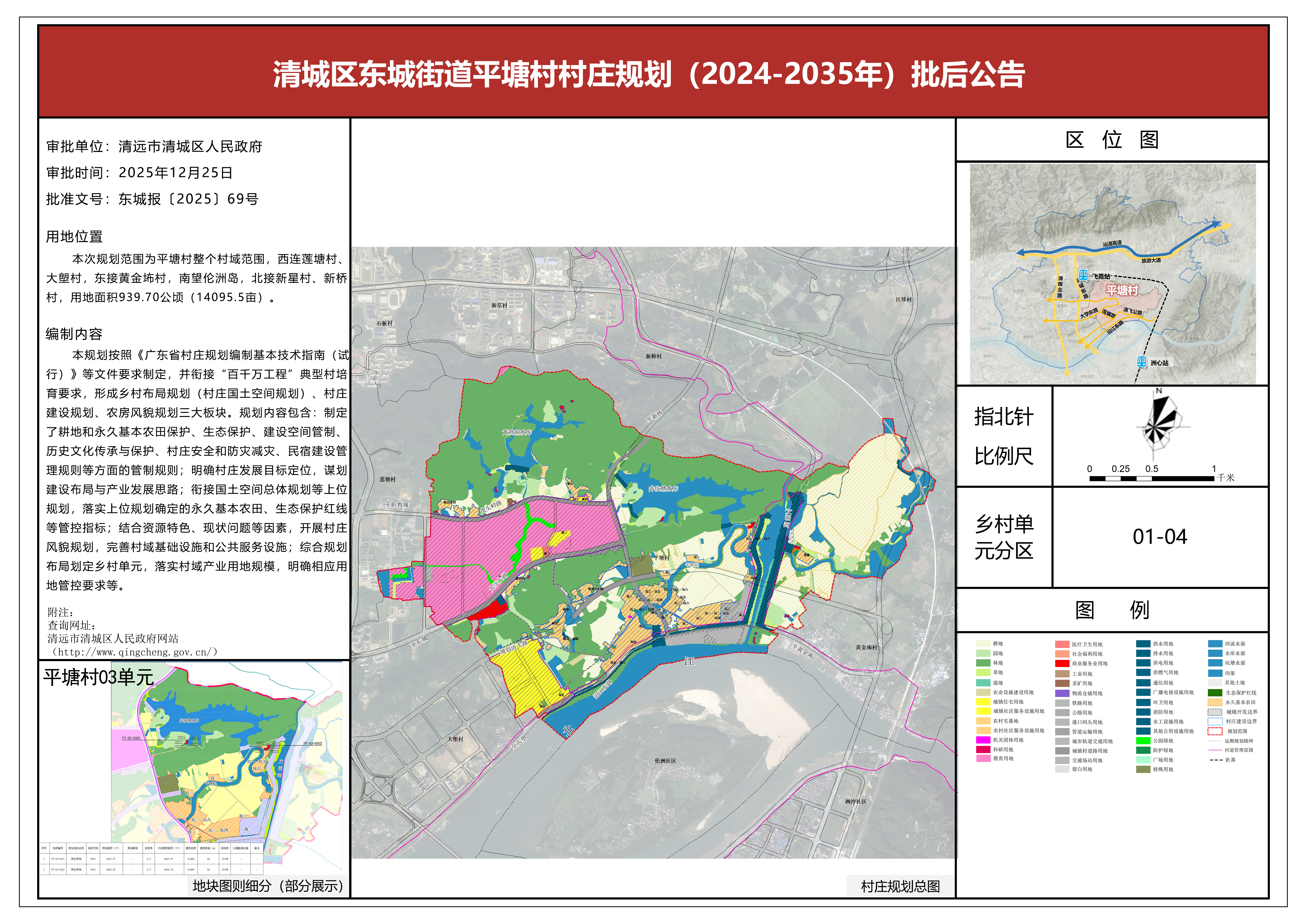 《清遠(yuǎn)市清城區(qū)東城街道平塘村村莊規(guī)劃(2024-2035年)》批后公告