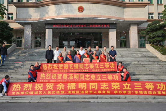 “矢志強軍建功業(yè),情系桑梓送榮光。”1月19日,清城區(qū)退役軍人事務局聯(lián)合區(qū)人民武裝部,區(qū)司法局以及東城街道辦事處為譚藝鋒、余振明和黃澤明三位榮立三等功的現(xiàn)役軍人家庭舉行“東城街道2026年立功受獎軍人家庭集體送喜報儀式”,共同送上承載榮譽的喜報與衷心祝賀。